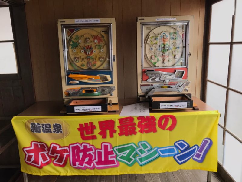 男湯の方のパチンコ台は、1台は玉が詰まって動かなくなってしまったそうです。ご厚意で寄贈された方も、今は大分にお住まいで、なかなか新温泉に来れないとか。もし行かれる方は、節度を守って、大切に遊んでいただくよう、お願いいたします。