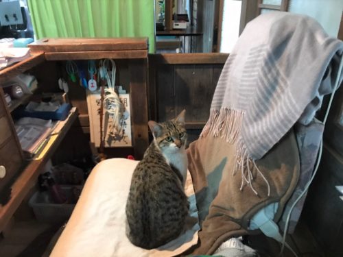 こちらの温泉の番台のイスで丸くなっていたのは、かわいい猫ちゃんたち!