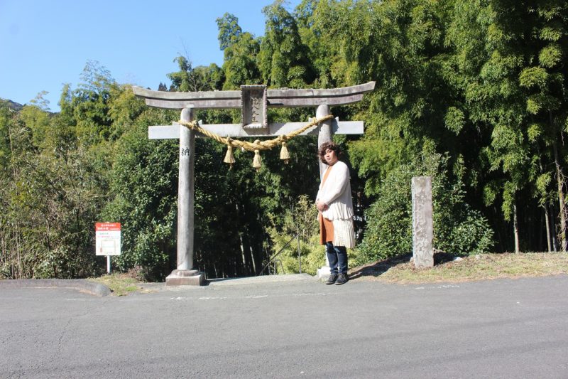 道路沿いに突然、鳥居が現れるので下っていきます。