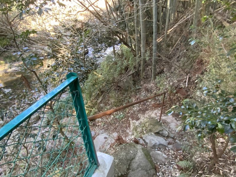 ちょっと急な道ですが、裏から下の河原まで降りることができるんです。