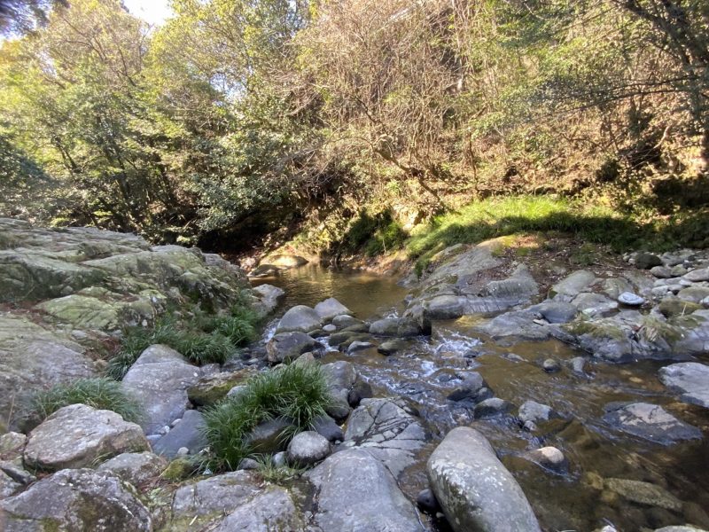 下まで降りると、自然がいっぱいの河原。大きな岩がごろごろっと転がっている自然そのままの川で、マイナスイオンを感じます。