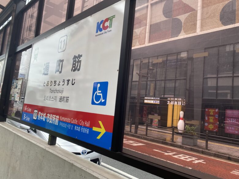 市電乗り場までの時間と合わせると、新水前寺駅から通町筋までの所要時間は約10分でした。