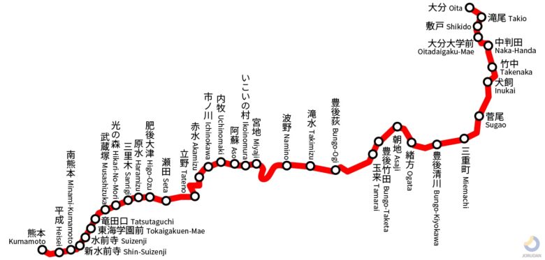 県内に様々なJRの路線はあるのですが、今回は豊肥本線で調べてみました。