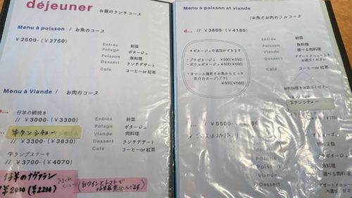 お昼のランチコースメニューはこちら。