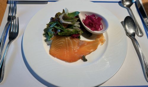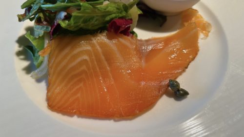 まずは前菜。こちらは「自家製スモークサーモン」