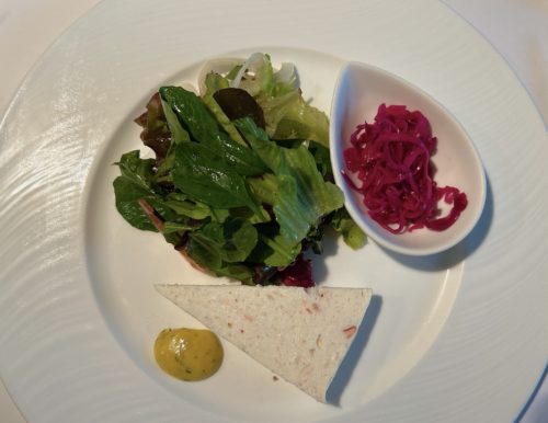 こちらは「魚介のテリーヌ」。天然鯛とホタテとエビのテリーヌです。