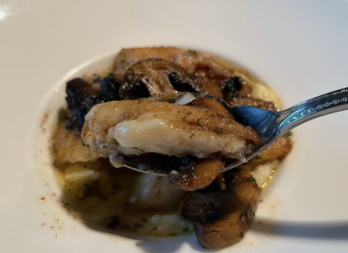 お魚とマッシュルーム、そしてポテトとオリーブオイル。全てが丁寧に作ってあり、食材の良さが絡み合って