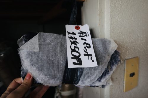 肩パット一枚50円。久しぶりに見ました!学生時代にスーツを縫った時肩パットを入れるという作業があったのですが、私は先生から「あんたか肩の張っとるけん、肩パットは入れんでよかよ!」と言われて未だに謎作業。バブリーなスーツを作る時、是非学びなおしたいものです。
