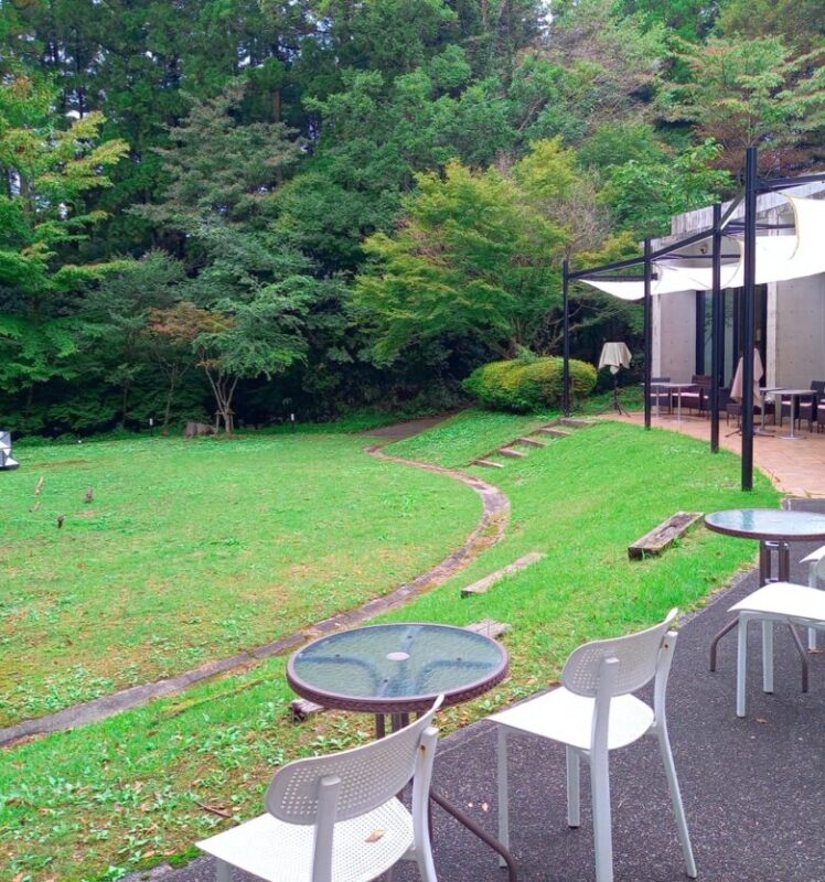 木立の間から見える外輪山やお庭を眺めながら食事やカフェを楽しめるの、阿蘇ならではで良いですよね!