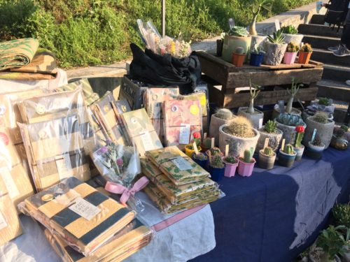 電車通りから階段を下りた河川敷のスペースが会場となっており、飲食店や雑貨店など、多数のお店が並びます。