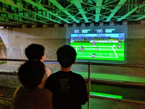 こちらは、大甲橋の橋げたを巨大スクリーンにして、ゲーム画面を投影する企画。