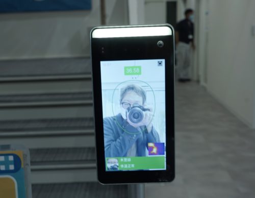 タブレットに顔を写して1秒も経たずに体温が出てきた!これ、病院とかイベント会場とかにあったら、渋滞にもならないだろうなぁ。