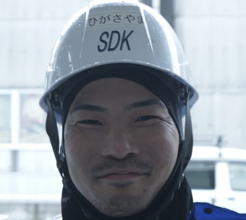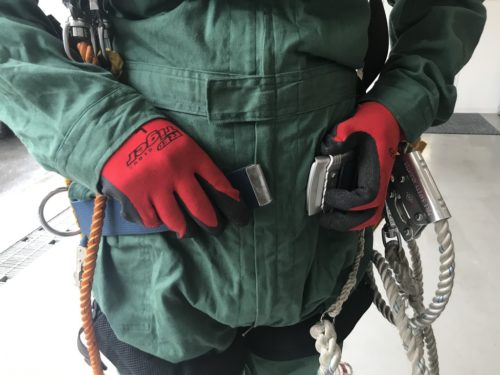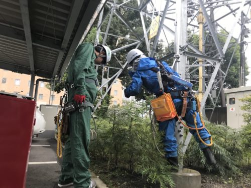 山田1人では危ないので、落ちた時に掴んでくれる役で、白鷺電気工業の日笠山さんに同伴していただきました。