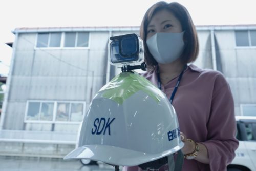 柴田さんはい山田さん。ゴープロ付きヘルメットです、これでしっかりと熊本市内を撮ってきてくださいね!