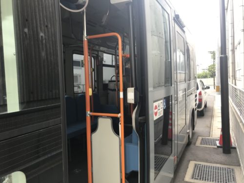 本当にバスでした(当たり前ですが)。ピンポンするボタンもあります。
