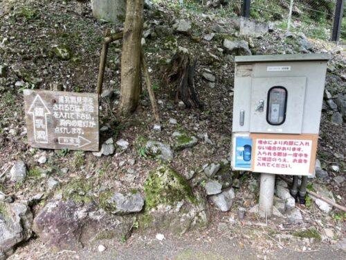 鍾乳洞は、上の写真の右の機械の中に100円を入れると、照明が20分間点灯するシステムになっています。