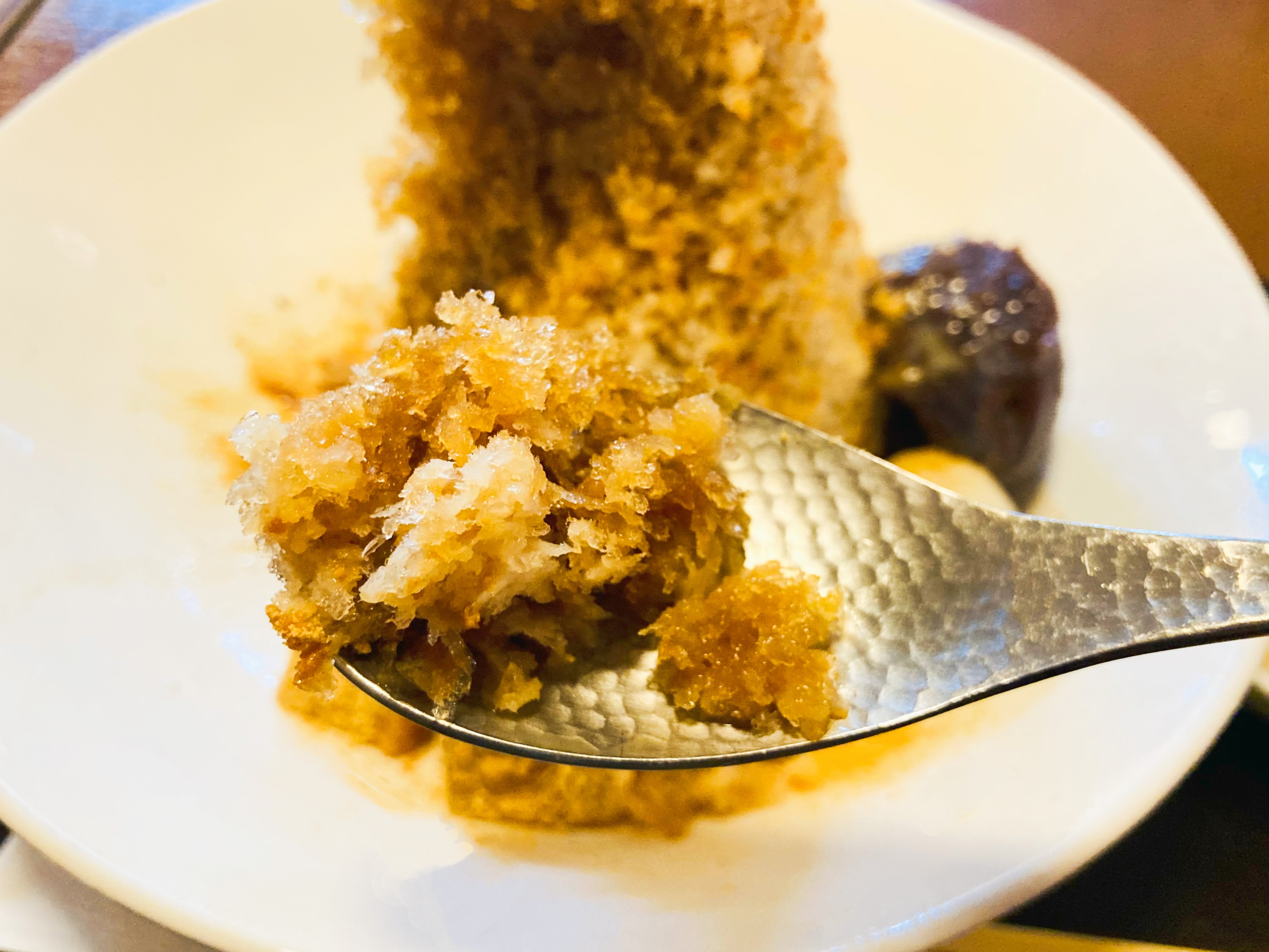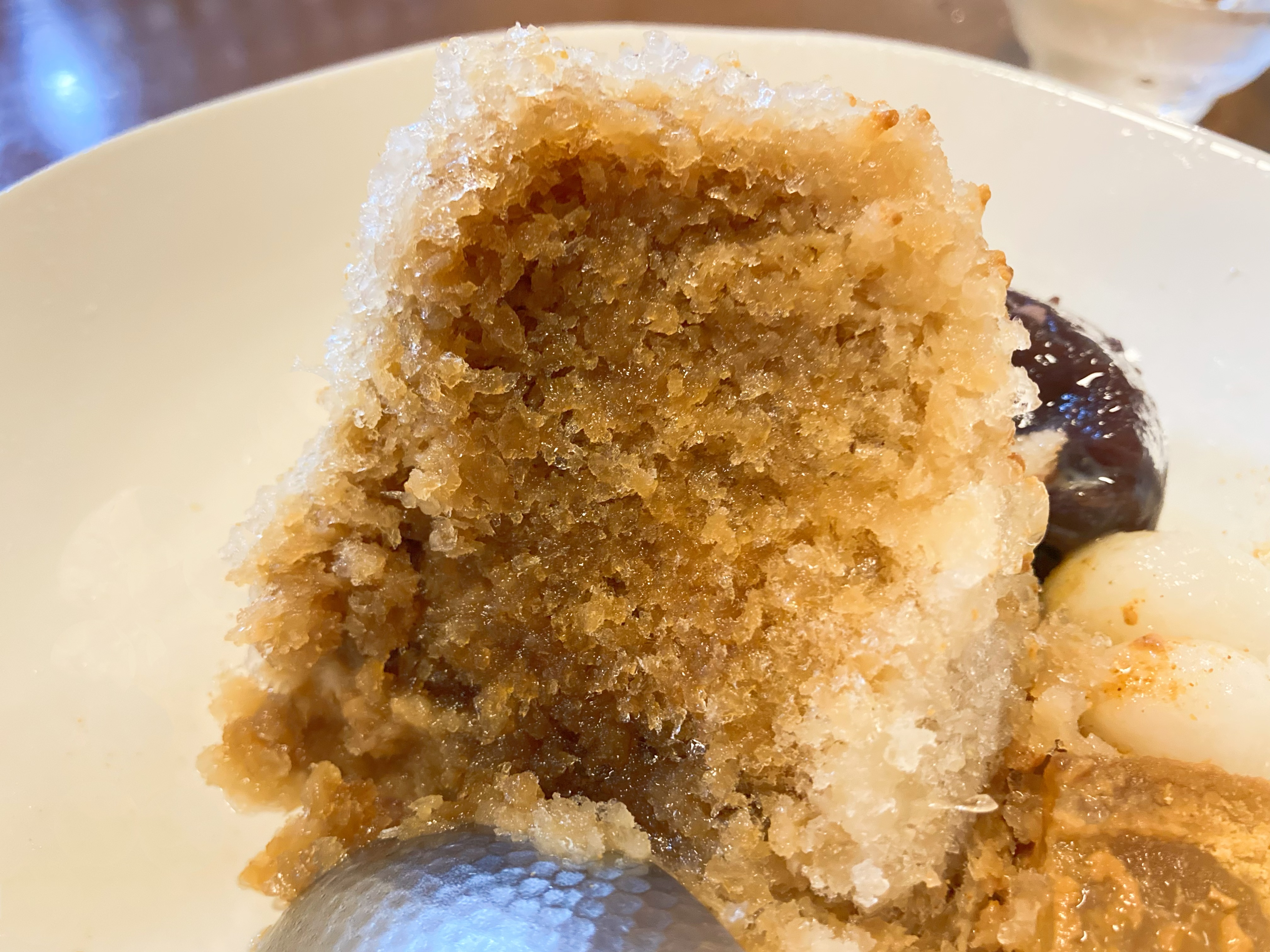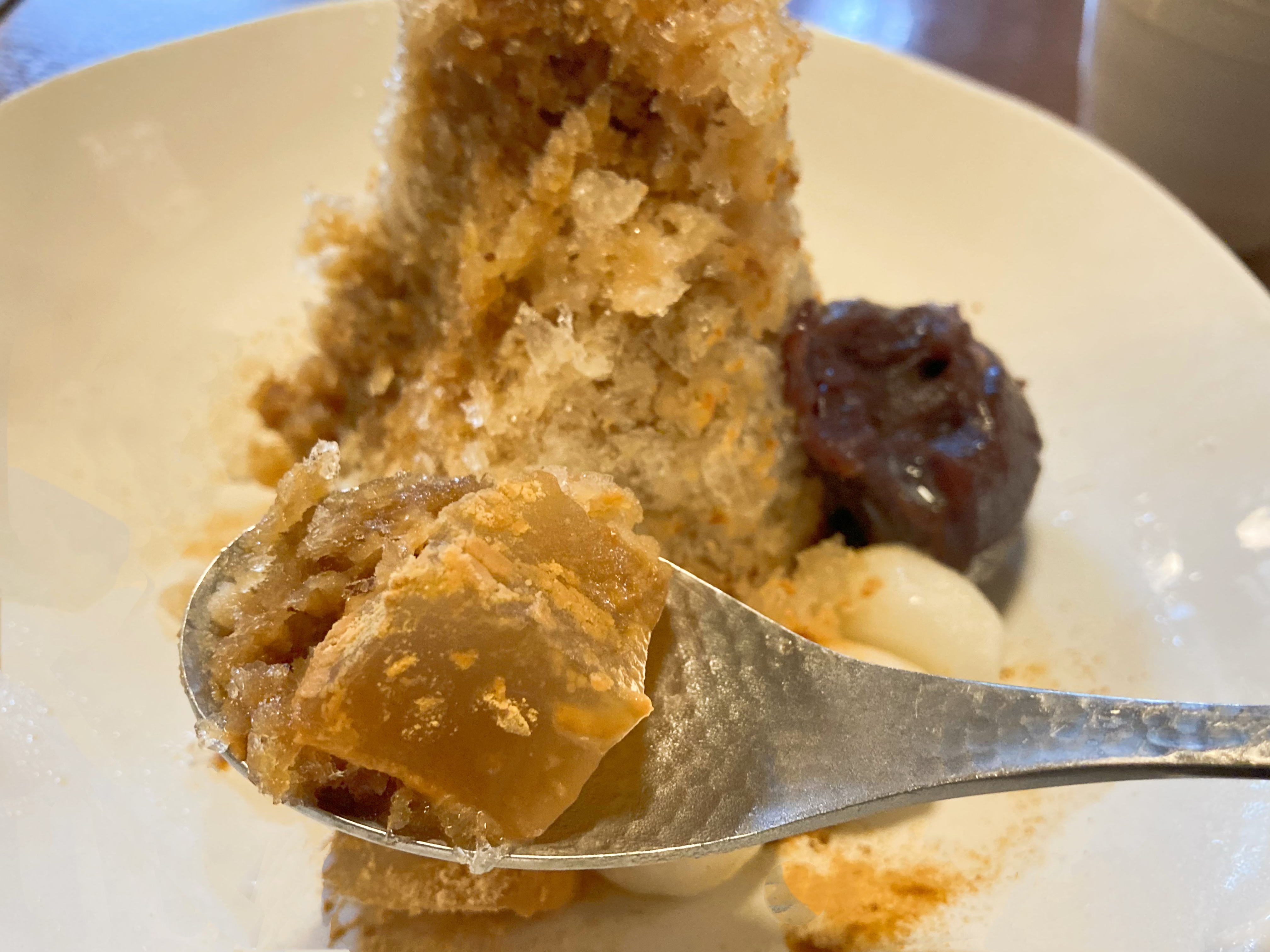 かき氷だけでも3種類あったのですが、私は南風にしました。この茶色は何かなーと思ったら黒みつときな粉。黒蜜がメインのかき氷って珍しい気がする。