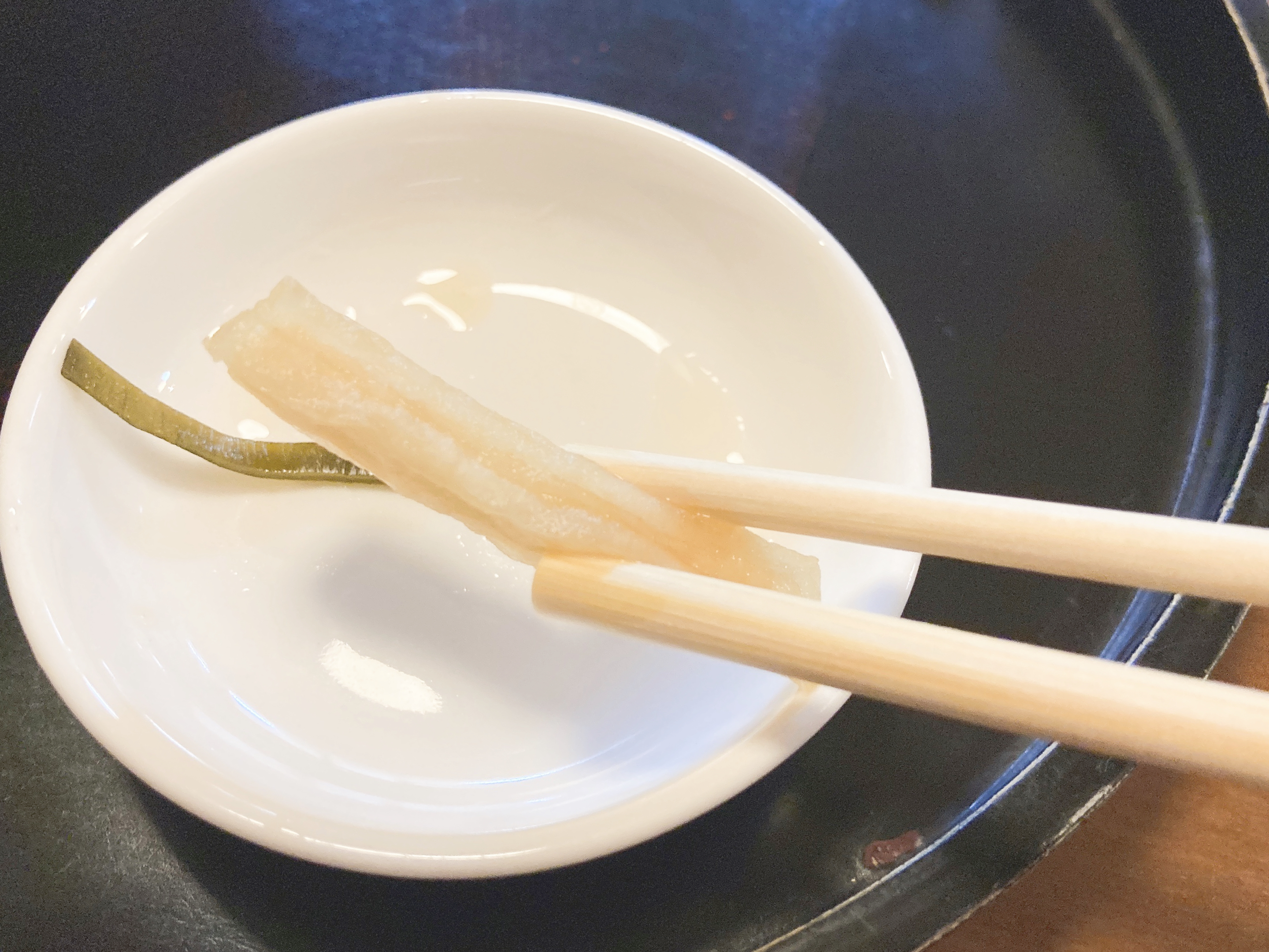 箸休めの漬物もすごくいい仕事をしてくれます。和のものなのでかき氷にも合うんですね。