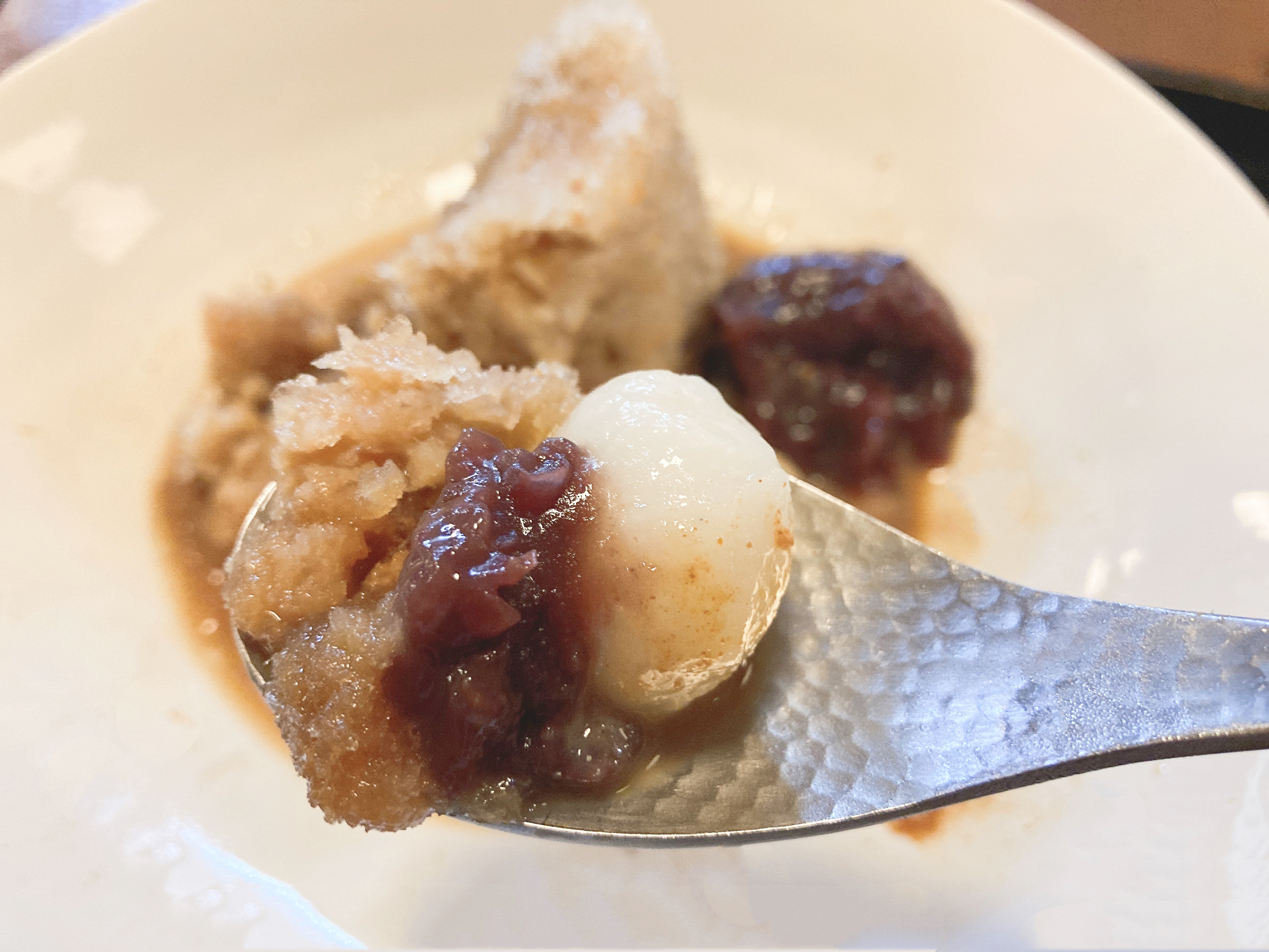 今後は脇にそっといる和スイーツと共に。わらび餅とかき氷を一緒に。きな粉でまとめられていてとっても相性が良いですが、シャリシャリとした食感ともにゅっとした食感のコントラストが面白い。