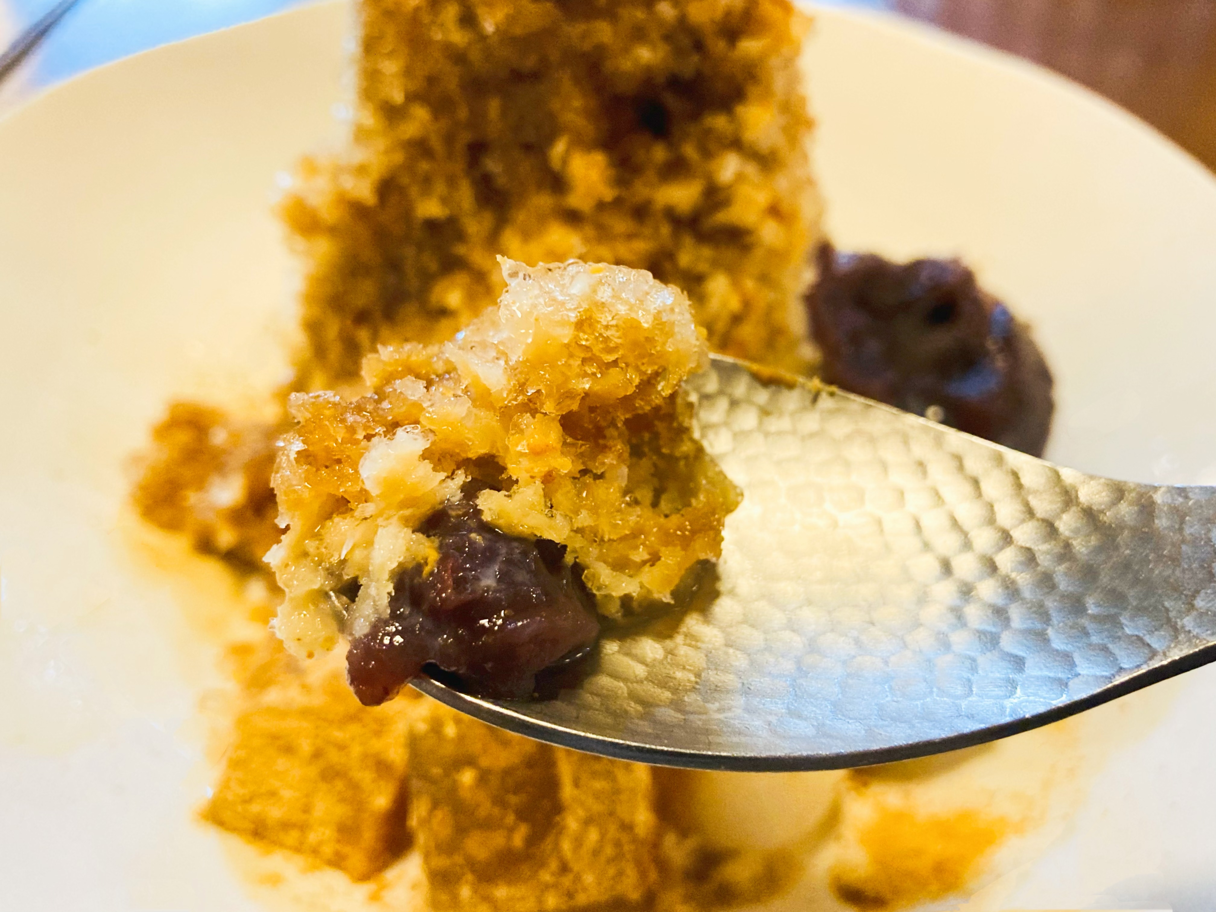 蜜が甘すぎず爽やかな口当たり。そして、食べた後はきな粉の風味がふわっと香ります。甘さよりも風味が強いので、くどくならずに食べ進めることが出来ます。