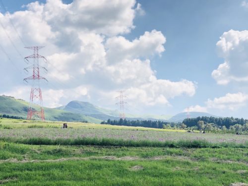 俵山交流館横のコスモス畑も花の時期をむかえ気持ちの良い風景。