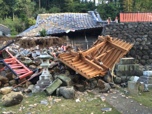 白山姫神社の宮司の緒方宏伸さんに、お話しを伺いましたところ、熊本震災で元々あった建物は全壊。未曾有の大惨事でした。