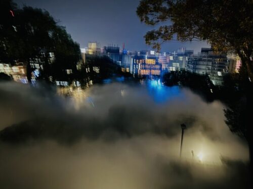 雲海のせいなのか、来る前に飲んだビールのせいなのか、ぼやけた街の灯りの中に秋の思い出また一つ。