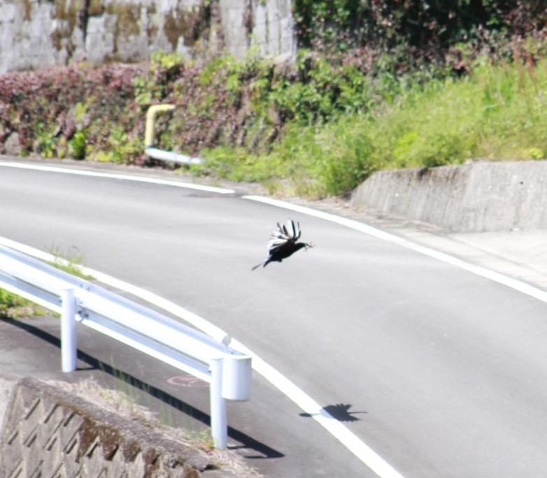 「球磨郡水上村に白いカラスがいます。止まってるときは黒なんですけど、飛んだら羽が白いです。いつも同じ場所にいるので、ぜひ見に来てください」