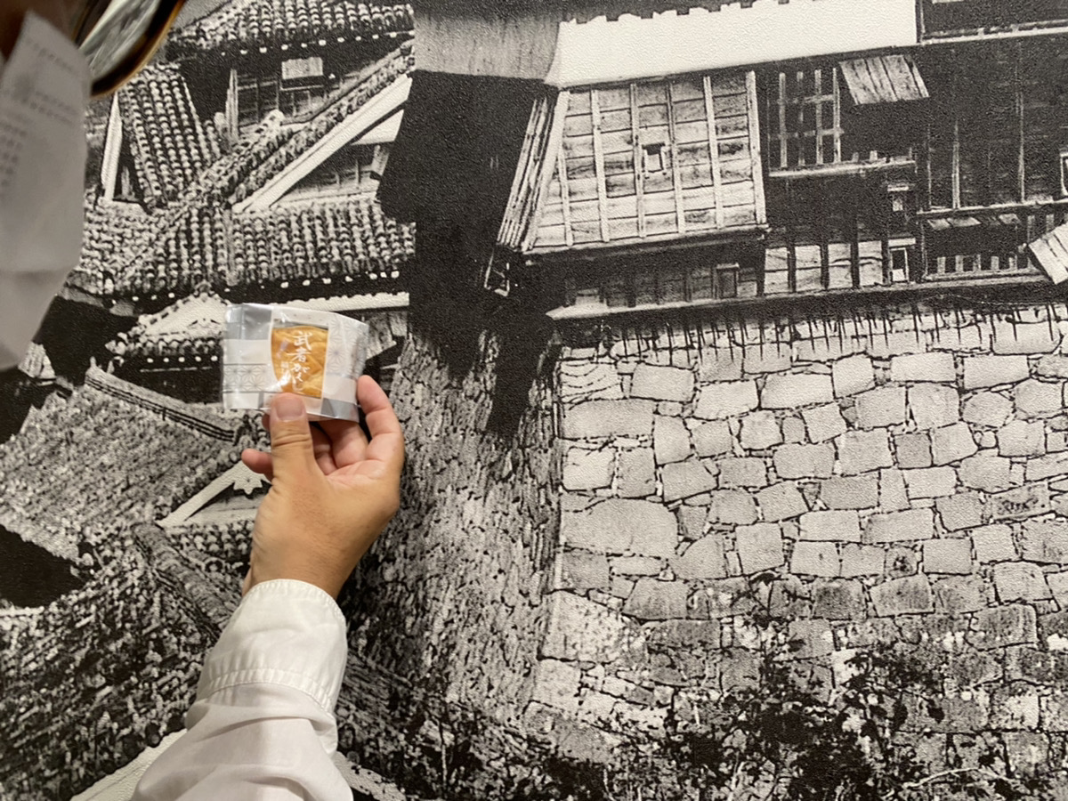 「お菓子の香梅の武者がえしもこうやって画像と当ててみると、本当に石に見えてきますよね。香梅さん本当にすごいなあ。石垣をモチーフにお菓子を作っちゃうんだもん。そしてそれが県民の心に深く残って」