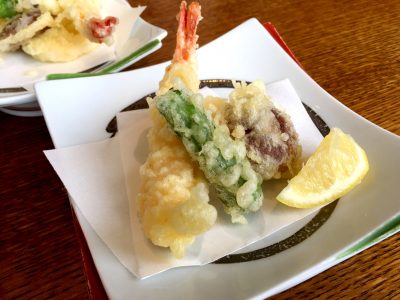 プリプリの海老と野菜のあま味を感じる野菜天。サクサクしてるけどふわっと軽やかな衣も格別。