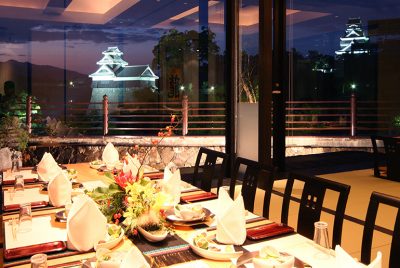 熊本城を間近に感じ目と口で堪能できる贅沢な時間を過ごしました。海外や県外の方は特に、この抜群の景観と食事に喜ばれます。復旧過程を見ながら、少しずつ元の姿を取り戻していく熊本城を眺望できます。