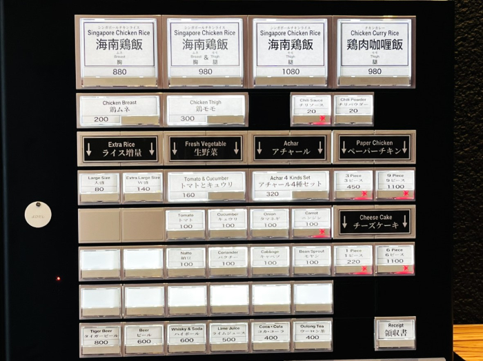 入口ちかくに食券機があるので、こちらで先にお料理を決めます。