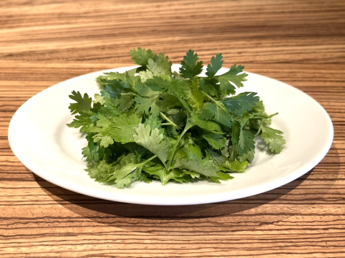 具材は単品で追加ができます。私はパクチー(100円)を追加しました。すると、こんなにたっぷりのパクチーが!