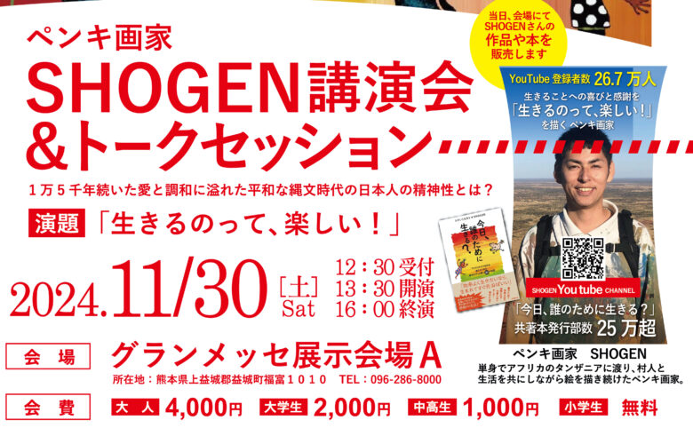 SHOGENさんは、タンザニアの方々が語り継ぐ縄文人の心や自然に寄り添う生き方、そしてそこで感じた想いを伝え続けることを決意。絵を描く活動と同時並行で「体験」を伝え続けています。