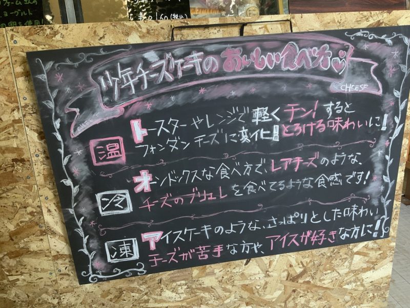 現在は「少年チーズケーキ」だけですが、今後はプリンやスフレなどチーズを使ったさまざまなお菓子を提供していくそうです。
