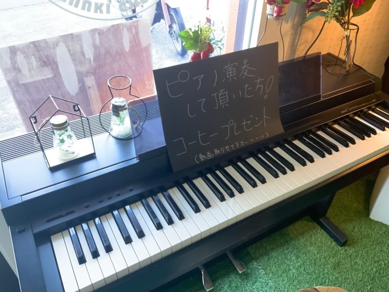 お店にはピアノが置いてあり、演奏するとコーヒーをサービスしてもらえます。