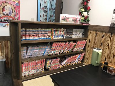 昭和の大衆酒場のような雰囲気で、本棚のマンガ本が懐かしく感じます。