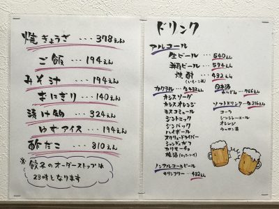 次回はカウンターでぎょうざをつまみながらビール最高ですね。ごちそうさまでした!!
