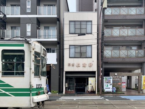 場所は熊本市中央区魚屋町で、市電「呉服町」電停が目の前という立地です。(ちなみに呉服町の電停からすぐなのに、住所が呉服町じゃないんです。ややこしい。この辺りの地名、複雑ですね。)