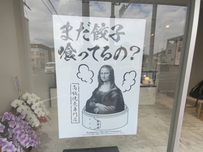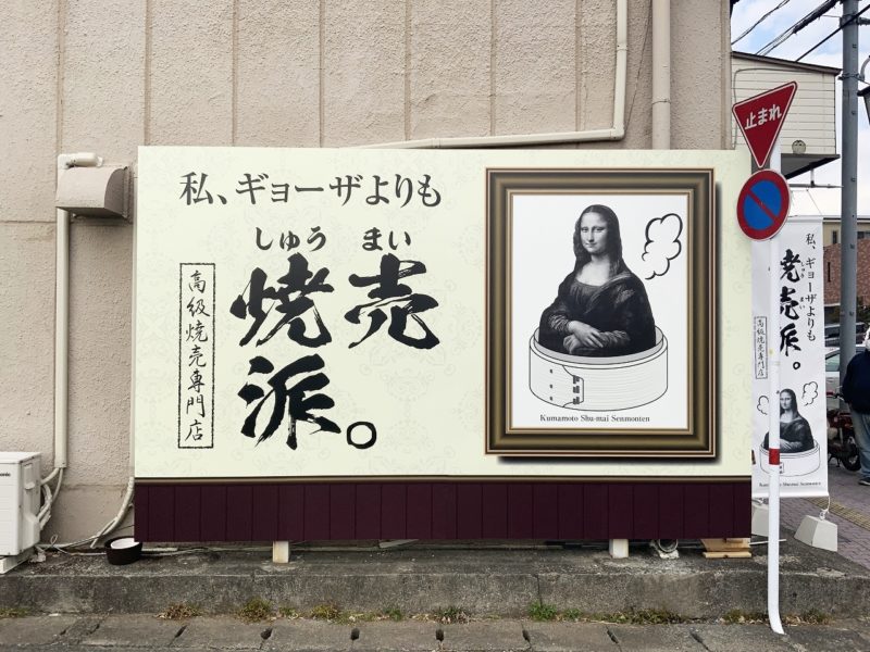 東区花立にオープンした高級焼売専門店「私、ギョーザよりも焼売派。」。看板にはモナ・リザ。