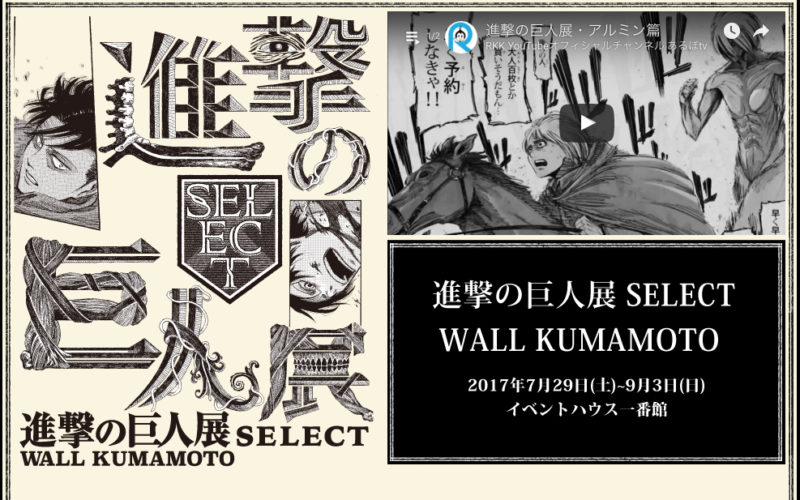 大人気漫画「進撃の巨人展 SELECT WALL KUMAMOTO」が7月29日に開催!