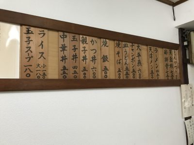 木材で作られた味のあるメニュー表(板)、懐かしい感じがたまりません。