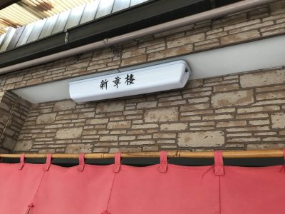 綺麗なえんじ色の暖簾とその上に「新華楼」の文字が見えますでしょうか?ここまで来ると安心です。あとは勇気を持ってその扉を開けるだけです!