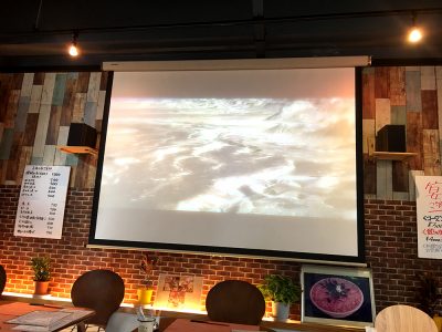 店内にはプロジェクターも設置されていて、BGM代わりに名作洋画などが流されています。パーティーや二次会とかにも使えそうですね!