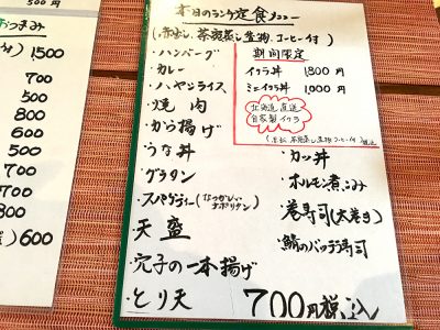 これほどの質で700円というのも最強ですが、ランチと言いながら希望あれば食材が切れるまで提供されるようなので、夜も食べられます!あとメニューでは700円で「うな丼」も食べられます。凄い!