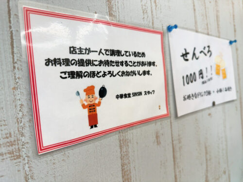 お食事をいただいている間もひっきりなしに来店がある中華料理店SinSin~真心~。