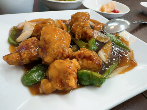 ご覧のように豚肉がカラッと揚がっているので、ベチャベチャ酢豚ではなくサクサク酢豚です。最高。