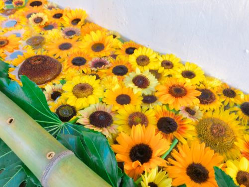 美しいひまわりの「花手水」