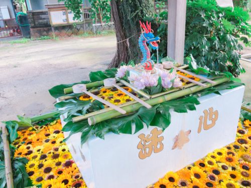 「四王子神社さんの大きな手水舎で花手水をしてみられてはどうでしょうか?」という声を頂き6月に2日間ほどやってみたところとても好評だったそう。