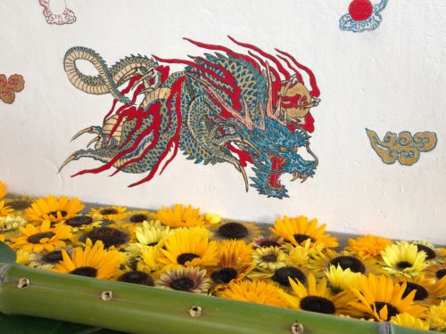 ちなみにこちらの龍の絵は松田さん自らが描かれたそう。カラフルな龍とお花が合いますよね~
